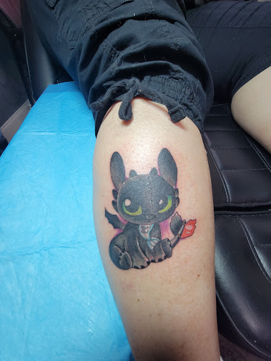 Read moreAfter seeing some work done on a friend of mine by Lou Hansen, my wife and I stopped in Saturday afternoon. We talked with Lou, and my wife showed him what she wanted. He said, "Give me a few," and he drew it up." Lou does awesome work, and his attention to detail is great. We enjoyed our conversation with him while he inked my wifes leg. He's very down to earth and, as said before, great at what he does. After he finished her tattoo, we discussed my tattoo and what I wanted. Mine is going to be about 3 hours, so I'm going to set that up in the future. I then showed him a drawing my son had done in elementary school, welp next thing he had it drawn up and inked me too. Both tattos came out amazing. Mine looked exactly like my son's drawing, which made me very happy. I can't wait to see what he does with my future tattoo. Everyone one in the shop is down to earth and very nice. I could not have gotten a better experience than the one we had. 8-22-24 update, all three of us in the house have gotten new tattoos by Lou. I got my monkey bones, my wife got the steer, and my son, the skull. Lou is a great...