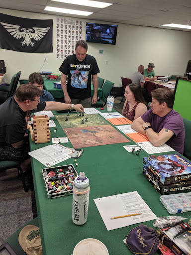 Great atmosphere, great people, all-inclusive, judgement free, family friendly gaming hall that sells games and collectables in addition to five huge tables with plenty of space to play all your favorite games on with intention to grow even more. This is a gaming hall that breaks away from the typical and provides a great environment to play in that can really feel like you're playing in your good friend's living room.