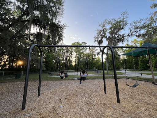 Great park. The kids loved it. They have an interesting set of swings for toddlers where the parent can swing with them so they are not scared. It worked for mine and it was the first time she was able to swing. My older kids all said they enjoyed it better than our neighborhood park. The slides are tall and the rock wall is made to look like actual (hard plastic)l rocks. That also have a rotating mushroom they could hang off of that the kids (...