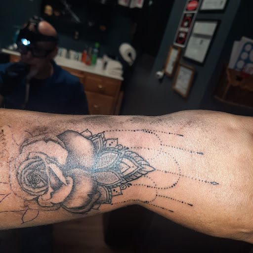 Read moreAbsolutely love this place.. have 1 completed tattoo and working on my second now. Johnny is an amazing artist, he and his wife are super personable, and always great to talk to. Johnny is very talented and I fully intend on being a long-term client and will post pictures of my in-progress tattoo when finished. It's beautiful already!! His black and Grey art is amazing, and the portrait he's doing now is amazing. He makes you feel completely comfortable while under the gun and is clean clear, and precise with his work. I Can't say enough good things! The second set of pics was an extremely difficult cover-up done on my husband's hand, covering an all-black skull. Just...