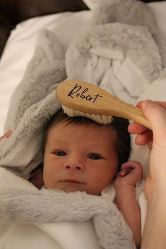 We received a newborn gift set from Parker Grove which included items such as a stats plaque and hair brush. Not only were the personalization details flawless and presentation exceptional, but the the quality of the materials used are phenomenal. We had a typical off the shelf brand hair brush we picked out ourselves from our baby shower which was made of synthetic bristles, but the brush in this kit was far superior. Bristles are both softer, and appear to be natural, so this brush is now our go to. I'm a stickler for quality, and I couldn't be happier. This will now be our first stop for any expecting...