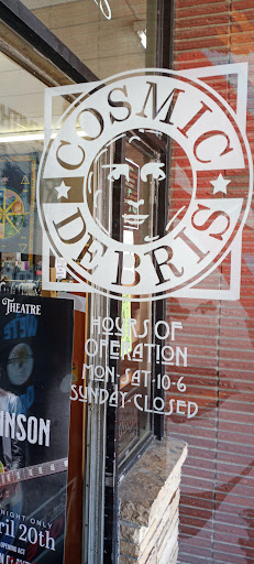 Read moreI was driving from SE GA to Huntsville, and I saw a big road sign for Cosmic Debris. Wild Crazy artwork on the sign, and I thought that this place might be to my liking, and it was on my way. Inside I found a large selection of Vintage concert T-Shirts, Vynle albums, and other stuff. In the back, I found a small headshop and I was looking at pipes. I did not see anything I liked, then the owner told me "Have you seen a 'Journey Bowl', and I replied that I had not. Once I saw this engineering masterpiece, I had to have one. I...