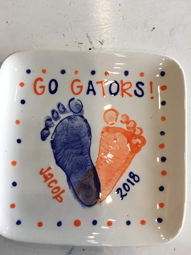 Ā Ā Ā Read moreI came with my son and a few ither moms and babes and we all had a great time! They set us up upstairs and it was nice that we had our own space. The staff was very friendly and patient as we figured out the pieces we wanted to make, get our paint, and settle in. Erica, the owner, came up and helped us all with our little ones' hand/foot prints and had a smile on her face the whole time. We didn't feel rushed or like an inconvenience at all especially after we were all done and cleaning up. Our things were done 4 days later despite being told it would take a week. I will definitely be back! Looking foreard to seeing the grandparents open their presents and see these coasters (they had a deal of 4 for $25 so I made 2 santas and 2 xmas trees) and for my husband to see his gator plate! Thank you guys for being so accomodating, patient, fun, and pleasant. Loved the music...