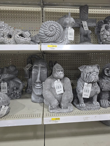 Read moreHEY!?! Didn't you just read my other review of The One Who's Name We Shall Not Speak? No, oh sorry, you looked familiar. Any way, after run in The One Who's Name We Shall Not Speak, Jim decided to hit Rual King on the way home. We walk in and WHOOOOSHHHH he has VANISHED into thin air! Yeah he can't shake me that quickly. We have been married for 20 YEARS! I know for some, you are thinking the correct, polite thing: AAAWWW!!! Yeah, oh how sweet! BUT there are OTHERS out there that KNOW the TRUTH and THOSE people are thinking, TWENTY? TWENTY, THAT'S IT, she ain't seen NOTHING YET! Silly Whipersnapper! ANYWAY he sees ANOTHER one behind THEIR counter. I saw the look on his face as I made my way over to see who he was beaming for now. It was another gun, another letters and numbers. It was all black, nothing shines, so OK! I am OFF! ON MY OWN, until his deal is done. Not wasting anytime, I am gone! I grab some miracle grow and chicken poop, UUHH that STINKS, and as I left a 20 year job at a publicly traded chicken farm, I should know. ANYWAY I realized I had not gotten a call from my husband, and wandered my way back to the gun counter. Only to find my husband patiently waiting for his background check to come back. (The night was still young) so WHOOT WHOOT I AM OFF! I find cement yard ornaments, I LOVE yard ART. And fell in love with several, but can't afford the almost $30 a piece (and I liked a LOT of them). ANYWAY long story short (yes THAT time past a while back) his patience was GONE now and I KNOW I must SOOTHE THE SAVAGE BEAST!!! Sweetly I say "Why don't I go ahead and check out so we can leave when you're ready" blinking my eyes rapidly while tilting my head. So when he saw me return with my cart full of goodies (yes I got more than chicken poop) we got stuck in the walkway because of the downpour outside. So we stood there talking to a very nice gentleman and I was looking at the cement statuary and saw MORE I wanted. Including a small elephant, which was my mother's favorite animal. Next day, Jim has to go back to Rual King. When he gets home he tells me there is something in the back seat I needed to get. Yep you guessed it, the only cement elephant they had. Oh and thank you Steve Atkins for telling me...