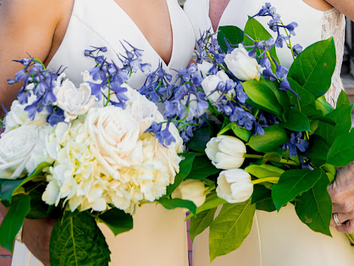 Our wedding ceremony took place under the big oak tree at the Historic Thomas Center in Gainesville, FL. Betsy Gardner at the Plant Shoppe Florist customized our flowers as requested matching our wedding colors of navy blue and gold to beautiful hydrangeas, gardenias, delphiniums, and tulips. Our bouquets were gorgeous! Betsy and her team also hung lanterns from the oak tree and suggested hanging some of our reception bottles with lights in them from the branches, which added significantly to the overall romance of the decor. She made gorgeous gold leaf garlands for our cat stroller (our cats were the ring-bearers!) and for the tables at the reception. Betsy and her team came to the venue early and they not only set up the lanterns, bottles, and flowers, but they also helped our wedding planner decorate the tables at the reception. They went above and beyond and were just great and fairly priced. We highly recommend Betsy and her team at the Plant Shoppe Florist for weddings, special events, and all other...