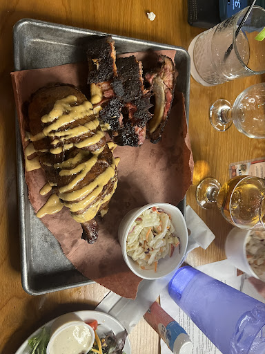 Food: The food was fine, the meat had good flavor, but was dry, however it probably would have been better hot. The apple coleslaw was really good. We had ordered the 1 lb pretzel, an item we had had many times at the brewing company, but because they were out of that item they gave us a small cheese filled soft pretzel that was reminiscent of a superpretzel from the frozen section. Not at all the same quality or size and honestly pretty mushy and bad.