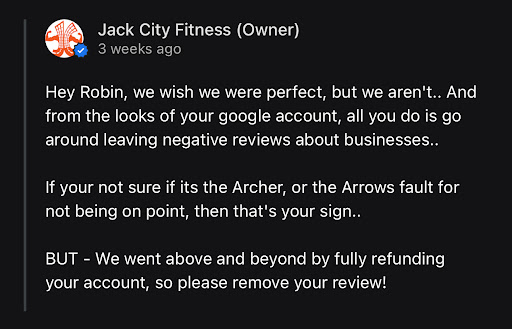 As much as I enjoyed going to jack city fitness it just wasnât right for me it was more of a CrossFit gym. Hence the reason I canceled, however when you say, âHey Ian, we canceled your account exactly as you requested within our 21 day window.â If that were true I wouldnât be leaving a review đ¤Śââď¸