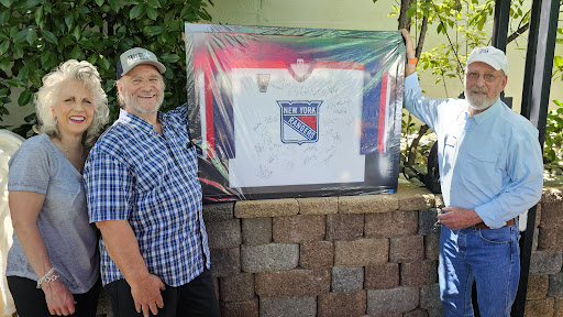 Do you believe in miracles? Here's ours... we were searching for a piece of signed NY Rangers memorabilia for Tom Fitzsimmons, our 30-year sports and news broadcaster. Within a 12 hour window, I called my cousin, who texted his son-in-law in Boise. Hunter walked into #Sportscardfanatic, asking if they carried Rangers memorabilia. They walked him over to a section of Texas Rangers gear, and he explained it was the NY Rangers he wanted. They laughed and told him no one is interested in hockey in Boise. As the three men stood there contemplating a solution, a young woman strolled in and said she had something in her car that she wanted to sell as she needed money to go skiing. Hunter, Christian, and Cody followed her out to her car, and when she opened the trunk, staring back at them was this 2005 NY Rangers jersey signed by the entire team. In complete disbelief, they called their boss, Sean, and explained what had just happened. After their discussion, Christian hung up and told Hunter that they were not only buying it BUT donating it to Tom's 30th Anniversary Celebration that took place June 3rd at Toffanelli's. Another "Miracle On Ice". Human kindness exists when people care about each other. Thank you so much, Sportscard Fanatic. Your generous hearts created an unexpected surprise for the #1 NY Rangers Fan, Tom, and our community simply can't stop talking about it... we still can't believe it. We are so grateful. Once strangers from different states, you in Garden City and us in Grass Valley, CA, we are now friends. Simply...