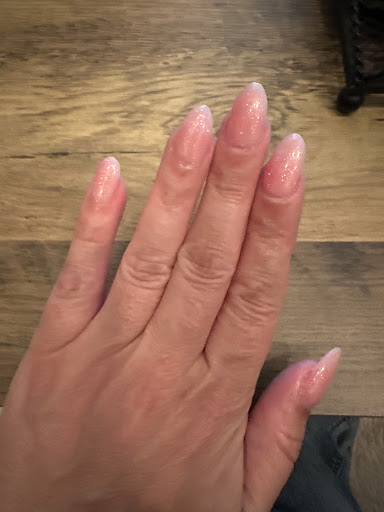When I left I still had acrylic all over my skin. When I went to wash my hands, she didn't even have brushes to get the acrylic off! So uncomfortable. Also the bathroom was disgusting. I have chunks of acrylic MISSING off the sides some fingernails, as well as some acrylic underneath my nail that I cannot get out. It is just a freaking hot mess.