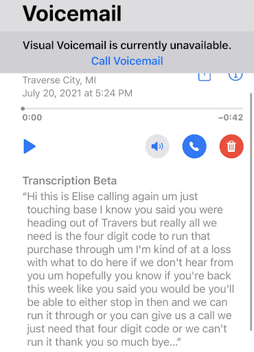 I had spoken to Elise for the first time on this matter on Sunday, when she made me aware of the issue. She had left me a voicemail prior, but I had not listened to it. On Sunday when we spoke, Elise was very short and accusatory with me, and did not once apologize for the mistake that had been made. She was only making it very clear that I had not responded the voice mail and she needed the security code ASAP. I did not have the card on me at the time we spoke and I explained that my work day would not be over for a few hours and I would not be able to get the code to her before they closed. I also explained that I had an early flight Monday morning for a work trip, but would return to Traverse City Tuesday night and would get the situation resolved. Before I had returned from the trip on Tuesday I received a call from the Sheriff’s office.