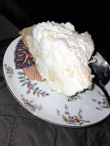 Read moreI've been following Piefalootin on Instagram for 6 months and drooling over their fresh baked pies. We were finally in the Piefalootin area of Garland, and we were excited to finally get that pie! It was an hour before closing, and while there was still pie, the variety is limited since they were made daily. My husband and I were greeted by the owners son, Conner, who was super friendly. He offered us sample forks of coconut cream pie and pecan pie. OMG! They melt in your mouth. We both wanted to try a range of pies, so we chose the option called Flight, which consisted of your choice 3 smaller slices of pie. I chose a blueberry buttermilk, pecan, and coconut pie. My husband chose Pecan, Keylime, and Sawdust pie. These were packaged up in a nice little container so we could take them home to enjoy since we live about 25 miles away. We had a nice conversation and learned that the pie shop opened 5 years ago. Conner even gave us 2 ice packs for travel to keep pies cool. Well, that was an unexpected extra touch of TLC. We are in Texas, and it was about 98 degrees out. How thoughtful was that!!! We did get a piece of apple crumb pie to share in the car. One bite of that reminded me of my mother's apple pie she would make for us. I haven't had those true combinations of flavors in a long, long time. My suggestion is that life is short. Get the pie! Every pie of the variety pack I got was delicious. Homemade crust and pies like mom used to make. Except it's Conners mom! Piefalootin was worth every single bite after the long 6-month wait. Shop was easy to find and is a cute, homey vibe. They have tables for pie eatin' and coffee drinking there and even have an area that has closed doors and table for large group of pie eatin' with others. Restroom is available, which is unisex. Very clean. Overall, it was a pleasurable pie...