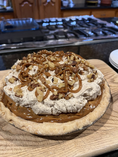 27 years. For 27 years I have lived a life devoid of much happiness. Everyday I wake up in a bed that too small, and go to a job that barely pays me enough for the hours of labor I put into it. I get lectured by those around me that are older than me about how I need to grow up, and teased by those younger than me for being an old man now. Everyday I can feel myself slowly drifting into the endless abyss that is this life and this universe. But suddenly, I find myself drawn to a glimmer of hope into the distance. I reach as far as I can, pleading for one last moment to bring me a sliver of joy I can cherish for the remainder I have in this world. I reach and reach until I come to the conclusion, that this universe is endless. It is pie. For the mathematical equation is never ending. Much like the joy I found that sweet Wednesday when I found myself walking into the Piefalootin, as a lost and weary traveler in this journey we call life. When I walked in, I was on a mission to find a baked item for my sisters birthday. I believed I would find a full and monotonous pie shop serving staples such as pecan pie. Instead, I was overwhelmed by the sheer number of choices and intricate details of each pie. Pies from every facet of the fruit kingdom. Pies with fillings from exotic far off lands and decorated as if Ancient Roman sculptures themselves had been hand carved by the staff at piefalootin. After much amazement and critical thinking, I finally decided upon the Banoffee pie. Quickly, I requested for it to be packaged up and I retreated home to prepare for my younger sisters birthday. When the moment came later that night, my entire families eyes gleamed in excitement. The first piece of the pie was bestowed upon my sister, followed the lesser members of my family, until finally, I piece of pie. I took one bite and instantly knew that life was not meaningless for this pie was brilliant. A pie crust topped with ripe bananas, caramel, dulce de leche coffee whipped cream, and finally pecans and more caramel. Every bite I took made me want to take more and more until finally, my slice was gone. For 27 years I lived a life devoid of much happiness. This pie gave me a spark I never knew I could find before. But then, that too was gone…..that is, until I realized half a pie still remained! The spark had turned into a full flame! Happiness is now with me, and maybe, for once, I’ll be able to discover the true meaning to life. This pie was a transcendental experience and I wish for all to experience the endless joy I received in eating this...