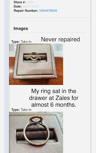 Read moreAt first my boyfriend and I came in to just take a look at rings. A man helped us by the name of Cody and when I found a ring I really loved from the Vera wang collection he told us it was limited edition now and Vera wang stopped making it so if I didn't buy it today I may never find it again. Of course being naive I believed him because he was so nice and so informative. Then he handed me over to larisa and the two of them continued to help us out through out this process. They told us about the Zales card. Stated that to lower my monthly payment I could do the plan with 9% interest. I almost backed out with it being monthly interest. When they said no it's per year so the interest would be so small I once again believed them. (Word for word). They then gave me a ring size 6 that was in their show case (I'm a 9) and said yes it doesn't fit but you can have this ring resized as many times as you want to through out your pregnancy and after. Never once asking to resize it for us and us being so excited we just left with the sizes they gave us for our rings. The next day we go to towneast zales to have our rings resized and the lady there tells us that firewheel zales must have really wanted to make this sale because they lied to us. The ring has to be special ordered for the right size and it can take 10 weeks. So I then I figured I'd ask if this ring was really limited edition and no longer being made and she said no that's not true either. Then I receive my statement today and the interest is monthly not yearly. So my payments they told me I'd have,the minimum payment is 30 dollars higher than they told me to expect. The only reason we bought the rings when we did was because they made it afforadsble and sound like I'd never be able to get the ring I loved ever again. And I'm very upset at the dishonesty. With a baby on the way we are on a tight budget and larisa and Cody despite the fact that they knew I did not want to pay a certain amount because of this, they still lied just to get a sale. And sent us on our way knowing what they did. I do not recommend anyone to come to this zales. Towneast zales was so honest and I wish I had gone...