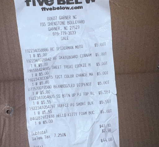 Update 6-20-24 Visited five below today and although I do really love the store and it was clean and organized today.... I'm really not a fan that they will pick that you had a great five-star experience on the survey. Literally they reach around and hit the button to rate them the highest. They don't let you do it, They do it.... I was going to rate them well anyways, But I didn't like how she reached around and hit the button for me.