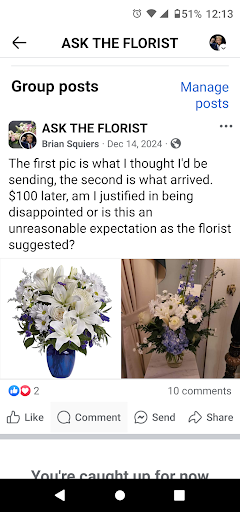 Ā Ā Ā Read moreI'm leaving this review in anticipation of the bouquet I ordered this evening for my mother, to be delivered Friday, May 10th, 2024. This is my 1st time using this florist, as I live on the coast of NC. I'm REALLY REALLY hopeful that come Friday my mom calls and is WOWED!!!šš»š¤š» I've read thru many of the more recent reviews and see there's a new owner for this establishment and she has been diligent in trying to make past transgressions right and I commend her for that!! It also gives me a bit of relief that my mom's flowers will be everything and more than expected!!! She has recently gotten over pneumonia and deserves to feel loved!ā¤ļøš©·š I'll update my review after delivery. *UPDATE TO OG REVIEW: 5/10/24: The flowers were delivered on time and she LOVED them!! She called me immediately to thank me and tell me the funny story of when the delivery driver pulled up and her thinking it was for the assistant in the office, lol, only for the assistant to read to her the beginning of the card: To the Bestest momma in the world...𤣠so she was definitely surprised and felt loved, which was my entire intention! Thanks...