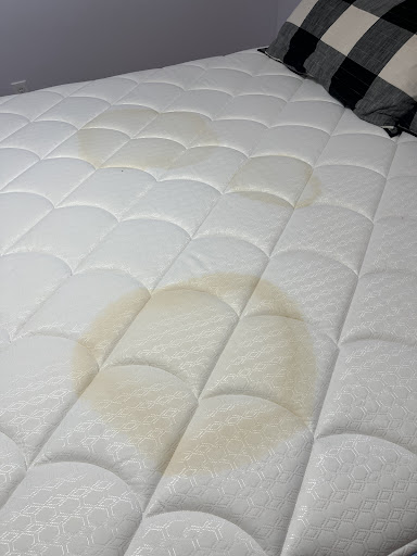 Upon arrival, we were greeted by substantial cleanliness issues: dead bugs on the floors & in window ledges, sticky, dirty rugs, and the primary bathroom / bedroom appeared to have not been cleaned whatsoever. The comforter & a throw pillow on the master bed had a crusty substance on them, the bathroom sink was covered in water spots, the hand towel was visibly dirty, and there was even a dirty bandaid in the garbage can. 🤢