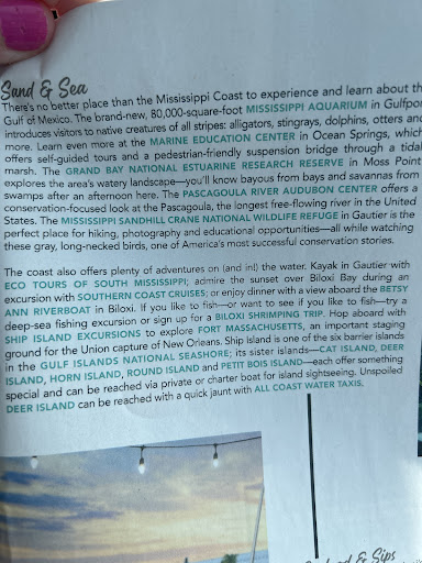 Was not what we expected based upon ads in Visit Mississippi. Building was locked where I suspect might have been information about bayous, bays, savannas, and swamps. Finally found someone at the leadership area where a rock climbing class was in process. When we asked questions, he was not very forthcoming with answers. If I would tell him what I wanted, they would do it. But, the whole experience was awkward although he was trying to be welcoming. We looked at a lovely view of what I assume was intercoastal waterway and left disappointed. It’s a lovely...