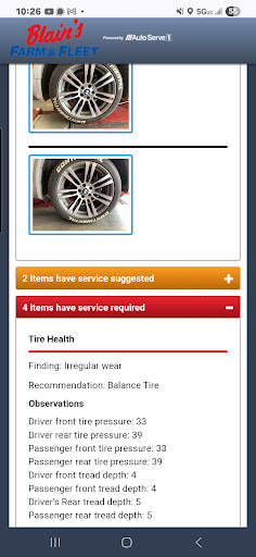 This time there was "thread wear concerns" and because of it they could not rotate and balance my tires. Oddly enough the recommended service email, that was sent as proof of why, stated that my tires needed balanced. Odd.
