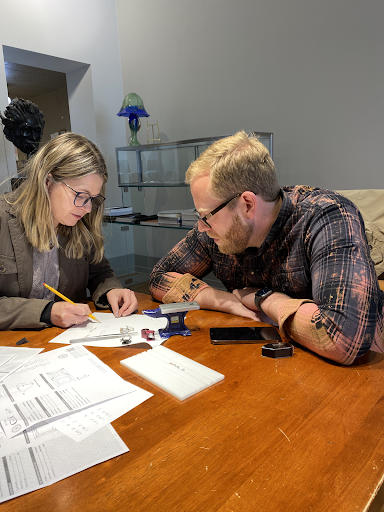 This story is about an 'older' couple that decided to change our status from boyfriend and girlfriend (after 8 years) to husband and wife! We've been curious about the Morrison Jewelry building ever since we moved here- 2yrs. ago and we finally had a valid reason to visit! Our plan was to announce our engagement on Christmas day while spending time with our family in Nashville and on a zoom call with our California fam and we needed that special ring. That's when I uncovered a very old (vintage) ring in my jewelry box that my mom had left to me. The history of who owned it may have been my grandmother who was very grand (in size and importance!). My grandfather was the Chief of Police in Brooklyn N.Y. back in the 1940's and I assumed it was her ring! The ring was rather large and needed to be sized if I were to wear it for our big announcement! That's when we decided to venture into one of our favorite historic buildings with ring in hand. We assumed this would be a long shot to get an old ring polished up enough to be a temporary solution for our engagement with the intention of purchasing a new one in the future. When we entered Morrison Jewelry we were pleasantly surprised - this building and it's interior beauty has a story to tell and Alicja and Val were there to warmly greet us and give us the tour- from the history of the building to each jewelry cabinet that they purchased to display their unique and artistic pieces in a way that reminded us of the beautifully curated art galleries and jewelry stores on Canyon Road in Santa Fe, New Mexico. We were invited to sit and chatted while my ring was inspected and my finger was sized.