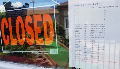 Total BS. Watch two people start playing and are waiting to be helped at front so I realize mini golf is at back counter so walk to back counter and ask for two adults at 9:05 as we se at least 10 plus people playing on a Friday night and the girl says sorry we are closed. I say I just looked it up online before we got here to make sure you were open and she says we go by the Crowd. REALLY !!! There's a bunch of people playing and I just watched 2 start just a few min ago. Sorry 😐 but your posted hours clearly read 9:30 everywhere. It's a beautiful summer night and plenty of people even the front was selling food to several people but we can't play mini golf 🏌