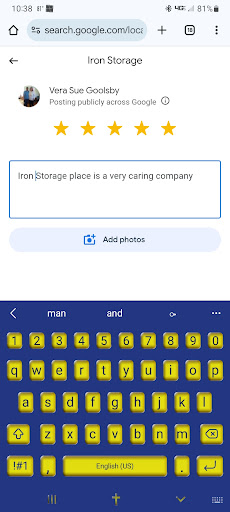 Read moreWe have had a wonderful experience with Iron Storage ! After not having such high hopes from previous experiences with storage units ; this has been overall great one ! From instant communication with owners to the price and promotions available. The unit is so nice and clean and easily accessible on several different entrances. Has made a daunting job of moving , a better one with using Iron Stornge...