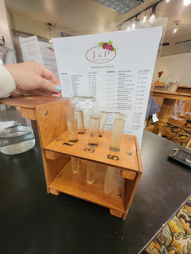 Read moreOur wine tasting crew stopped by at 3:30 on a Thursday afternoon. We were given menus to choose 5 wines for our tasting. The cost was $6.00. I have to say that none of us ever leave a sample of wine. At J&P we could not drink ANY of the samples we had. Every one of them smelled like acetone and tasted as if they had been sitting for weeks. The server said she didn't understand, she had just tasted them last week. All of these were horrible. I hate writing reviews like this... We were given bowls of popcorn and plastic cups that had 2 Ritz crackers and 2 cheeses as a snack. Ugh... We are NOT snooty. This...