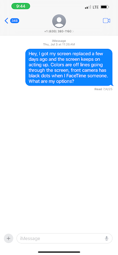 Right after the replacement, the screen felt a little off, but I thought it might fix itself. Over the next few days, it got progressively worse. I called several times on 7/3/25, but no one answered. The voicemail said to send a text instead, so on 7/4/25 I tried calling again and eventually sent a text. I even uploaded a photo as proof that the message was read, but I never received a response.