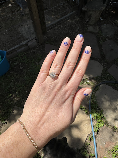 5th visit - got a lovely shade of brown on my nails and one yin yang sign on each hand, with gold dots on each finger. Sadly the gold dots rubbed off within a day so this wasn’t my favorite manicure. Lasted four ish weeks before both pointer nails broke.