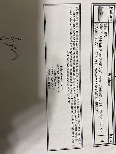 Read moreI bought these shoes, online, from cow town and got shipped to my house. I decided I would never wear them and went to return them. The guy at the desk told me I cannot return Nike shoes. It says nothing about that on the receipt, it only mentions a time frame. He called a manager, the manager also said no. I explained my case of the receipt again, he proceeded to call the owner, the owner said no. I even tried exchanging it. How can the owner, herself, not honor the what’s on the receipt?!? It’s bad business. This was my first purchase from cow town and I will never buy anything from...