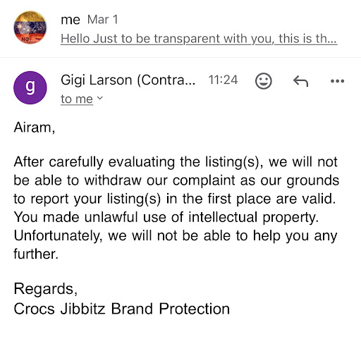 Hello everyone. Sorry to tell you #crocs decided to make intellectual property claims because o had 4 listings on Etsy. Even though I had 8000 products and designs that are not crocs lookalike. And that I did not know they had a patent. And that all the print on demand stores sell the shoes to everyone. #crocs decided not to listen to my honest story and not to withdraw their claim for 4 listings and even though they sell millions to people. My store is a 2 pero. Store. It’s me and my mum. And the profits help to feed animals in the streets. So this lawyer for #crocs have decided that my store should be close. Not listening to the entire story and punish me young Latino women. So it’s not that I violated 4 listings. It is #racism #discrimination #crocs #boycott...