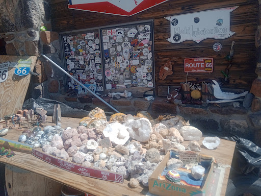 The shop is everything! The perfect route 66 stop. It has all the necessities and all the tourist needs and wants. Plus, unique gifts, crystals, rocks, and super cool scrap metal art.