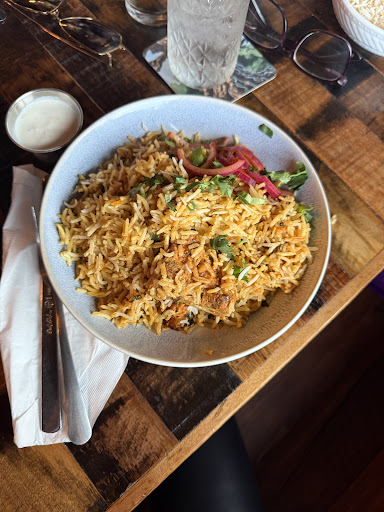 Chicken biryani followed, layered like a Southern casserole, but scented with cardamom and clove instead of cream-of-mushroom. You didnāt eat it so much as you mined itāeach forkful a dig into something deeper.