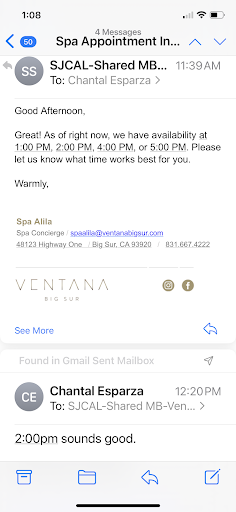 Very bummed about this bad communication, this weekend is a special weekend for my fiancé and I which is part of why I wanted to book a massage for him on the emails it doesn’t say anything about the spa only allowing guests who are staying at the resort book for the spa, when I called to make payment and finalize everything the lady on the phone mentioned I’m not aloud to book anything at the spa unless I am staying at the resort? The person I was in contact with on the email didn’t mention anything about that so I was not able to keep my original plans. I feel they should have honored us being able to book a massage since it was their bad...