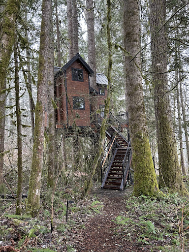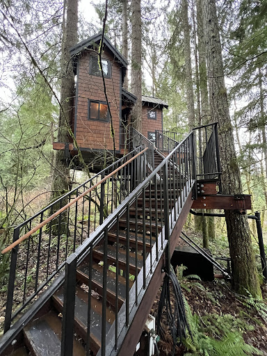 Had the honor of staying here recently. My Fiance booked this as one of our stays in our end of year trip to the PNW. The treehouse is absolutely stunning. Yes it really is a treehouse. Located in Ashford,Wa you have local access to diners, convenience store, a gas station, and a 10 minute drive to Mt Rainer. The house has a kitchen with electric stove top, microwave/oven, spacious and comfortable living room, fireplace, and bathroom and standing shower on the first floor. A sturdy ladder climb to the second floor gets you to the queen bed nook and hammock/net resting area. The AC/Heater unit is also located in the second level. Remote controls are easily accesible to control this unit, the fireplace, TV, soundbars, and dvd players. The hosts are very considerate in making sure you have a comfortable stay as they have board games; a large collection of dvd movies, and a detailed instruction book that has easy instructions on how to use all the amenities and remotes. We can’t wait to be back in the area as we will sure...