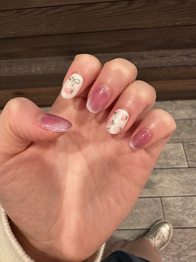 Read moreThey do an amazing job here!! Amy was so careful and meticulous with my design. Every time I come here they make a beautiful piece of art. The only thing I would watch out for is if they get some gel on your skin — curing that on can cause you to develop an allergy and make you unable to receive health treatments in the future such as hip replacements or dental fillings. If that happens, advocate for wiping it off with acetone! I had to insist they do that because they kept telling me it was okay not to wipe it off. Otherwise,...