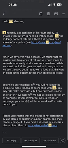 Beware all of you REI customers! This independently owned company has taken mask wearing policies to the next inappropriate level, even breaking the Americans with disabilities act over and over again! Not only do they require you to wear a mask, as you will see below, they require you to wear it up to the eye bone and below the chin. This is so you can go into their overly priced store and be treated horribly by their staff. After speaking with their headquarters, it is up to the discretion of their employees to decide how you should be wearing your mask. I was in the Grand Junction store on 10/1/20. The employees kept approaching me and telling me that my mask needed to be up more, even though my mask was already up to the top bridge of my nose. After asking to speak to a manager a gal by the name of Molly approached me and immediately stated that the REI mask requirement was that the mask, not only must cover the nose, but must go past the nose to the lower eye rim. When I asked her for the corporate number she stated that I could get it online and that REI was independently owned and had the right to make you wear your mask up to the eye rim or any other way. I told her that I was going to contact the corporate office and proceeded to leave. Molly then followed me out of the store yelling at me, stating that she had also decided that I was no longer allowed back into the store. I then contacted their corporate office and I was then told that the employees do have the right to make you were your mask as high or low as they would like if they feel it would protect them more, even if it’s up to your eyeballs! This all explains why there are never any cars or people in this store! There are so many other retailers that sell the same stuff, at a lower price and with friendly staff. Why waste your time with such a...