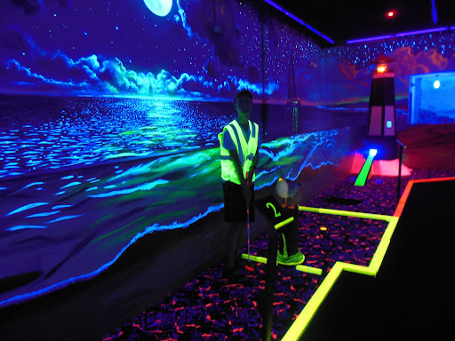Read moreGlow in the dark is a cool concept. The courses are simple with very few obstacles. There are also bathrooms and a drinking fountain located in the middle of the mini golf course. This was nice for our group which consisted of 8 people ages 3-41. We were politely asked to do each hole in 2 groups because another group was coming in. We thought it was goofy at first but it really did speed things up and we were still able to visit. $10.50 = one round of mini golf (18 holes) and unlimited arcade (excluding prize machines). $15 = above mentioned plus a refillable drink. Three and under are free, as well as, military and senior discounts. The food area was more like munchies or a snack shack, a bit expensive but cheaper than the theatre prices so I was semi-ok with it. The staff were all polite and friendly. They have about 8 driving arcade games, a couple shooter games, an electronic pinball, foosball, air hockey, and a few miscellaneous ones. They also have a few prize machines you can play for a dollar each. There are three or four tables to sit down at as well. This was a great way to pass the time visiting with family from out of state. We planned this also based on Michigan weather being crazy, small children, and a pregnant woman. We were all happy with our visit and would recommend this for a nice...