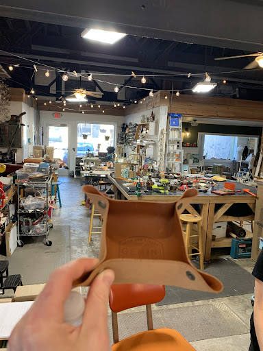 This shop is awesome! Great makers, great products, great conversations. It's amazing having a spot in town where you can walk in, pitch a concept for something custom, and have a variety of artists ready to step in and make your dreams a reality. Parliament hosts guests artists but is also home to Elyse (Littlewings Designs) and Jake (Harbinger Leather Design) - a married couple making some amazing leather goods.