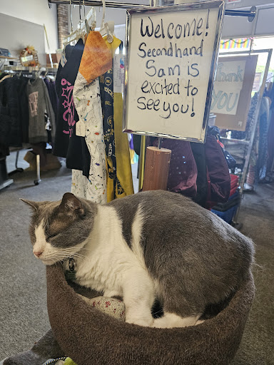 Read moreThis place makes me so happy! The ladies who work/volunteer there are so friendly and funny that I want to hang out with them outside shopping. And Second Hand (ham) Sam is adorable! He met us as soon as we walked in and allowed us to worship his royal chonkiness. The front of the store is curated like a vintage shop. We found several nice vintage sports coats for $10 (let me admit that another vintage shop locally wanted $75 for theirs). I found several trendy pieces suitable for work and play, all for between $5-7/piece. They also have a small selection of articles that they hand printed, decorated ,sewed cool patches on... and still reasonably priced! I appreciate that there is a nice variety of sizes and styles, I found things for myself in small and a few items that my 70 year old thicky-thick mom will love. If I lived in Grand Rapids, I would live...