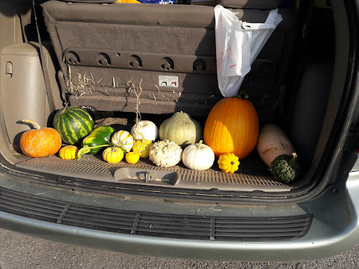 A great, family friendly atmosphere with spooky vibes and lots & lots of pumpkins. There was even tomatoes, squashes, and the cute tiny decorative pumpkins. There was all kinds of variety. You could even walk out to the pumpkin patch to see what you could find with your wagon. Such a cute, festive place. This was our first time coming and we will definitely be back next year :) We purchased all that was in the wagon (6 fat pumpkins and several tiny ones that you can’t see)...