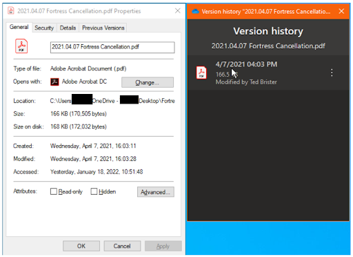 Not only do they claim not to have received it, but they also accuse me of being untruthful and state I never mailed the letter. See screen shots of email thread. Hindsight being 20/20, I should have sent the cancellation letter via certified mail but doing so for cancelling an alarm service seemed a bit overkill. I can show when I drafted the letter and state that their assertion that I drafted the letter but never mailed it is absurd. See screen shots of file properties.