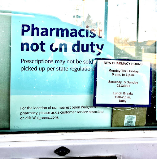 Sometime recently Walgreens changed their Pharmacy hours. I found out the hard way by pulling up to get my prescription, only to find the Pharmacy was closed due to new hours. Therefore I had to wait until the next day for a medication which I am required to take every day, to remain healthy.