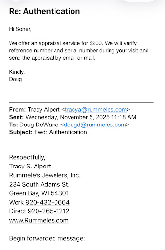 On November 6, 2025, I contacted w Rummele’s Jewelers for a Rolex watch which I was planing to purchased after appraisals report done. After confirming the date, time, and cost through our emails, I drove 2.5 hours from Madison to Green Bay. They emailed me that they would do it for $200 and that they were available for the afternoon. Despite having emailed me a few days prior and receiving confirmation, when I arrived at the store, they refused to check the authenticity of watch. Even though I showed them the email they sent a few hours earlier and asked if they had decided to do this now??? They refused to provide service. I asked you to verify the authenticity of a watch. It's not hard to understand that they acted this way because they heard I was going to buy it from another seller. I'm not here to listen to your arbitrary service policy and the risks you refuse to take. I will never consider purchasing from this company again. Is it wrong to take a watch to a Rolex dealer and check its authenticity before purchasing it from another seller? If there is a rule or law according to that don’t make a schedule or put it everywhere!!!!!! I will complain about you on every platform I can use to file...