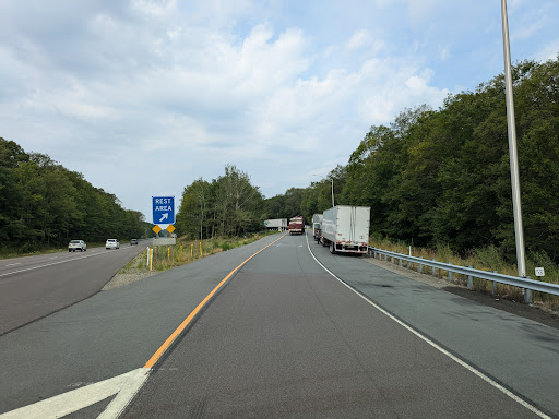 The rest area has the usual with restrooms, vending machines and a spot for dog walking. It's nice and green here, a great break from fighting with highway traffic.