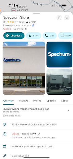 Read moreI used to swear by Spectrum (Iâd of given 4.5âď¸âs) when we lived in NC 14yrs. But 2âď¸âs after we moved out here 2yrs ago; Iâve honestly been struggling keeping them our WIFI is basically nonexistent but the straw that broke this longtime customers back was when they were so rude & told us both my sonâs phones were basically useless cuz the batteries werenât functioning properly (Not true they are fully functional) the issues were the glue holding the backs to the phones were coming unglued!! The 3 workerâs all laughed at how âoldâ the phones were Samsung Galaxy S21 2021. They work Perfectly still but they said with them being outdated unless I got different phones nothing was covered by any warranty or protection so Needless to say I CANCELLED the phones service & will be taking our business elsewhere; so far dealing with the WIFI Only cuz of the price I pay, but currently looking & might leave when we find a replacement! I definitely WOULDNâT recommend the Lancaster store. Workers are Rude & donât care they only try & basically lie about your device so u buy a new...