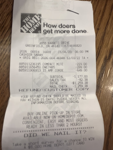 My experience at my nearby Home Depot today was horrific. Most of the people there are friendly and helpful but today I got a really nasty taste off of an associate that worked there. An older gentlemen who worked in lumber in the Greenfield, IN 2055 Barrett Drive. He was extremely rude, didn’t seem to want to help. When I asked to borrow a measuring tape he refused. I mentioned I was a veteran during a conversation and he scoffed. Because I was dressed in nicer attire for a dinner I came back from, he gave the impression that I was young and stupid and didn’t know what I was talking about. Because of his behavior, tone of voice, lack of customer service, it turned me away from completing a $400 project.