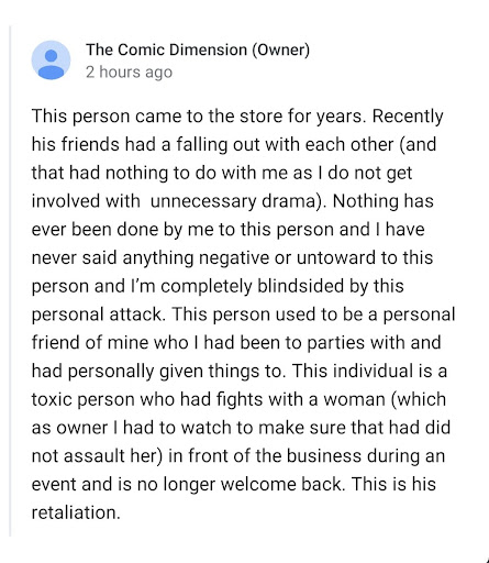 The Comic Dimension is one of those rare comic shops that don't show you attention to only try to shove as much merchandise down your throat to make a sale. The owners are some of those people you will remember because they make it a point to remember you and your hobby(or passion for those of us who enjoy what we play and engage in). It's very laid-back and if you have a question, Chris aka Prime will surely assist you or find someone who does.