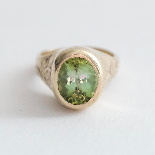 I recently worked with Kate to create a custom ring and I could not be happier with the results! From start to finish, Kate worked with me to design the ring, select the stone (a natural Brazilian bi-colored tourmaline - green/blue), and personalize the hand engravings. She is such a good listener and works very well with clients. Kate had great communication throughout the process and sent photos and videos while the ring was being produced. She also invited me into the studio multiple times to work on the design and select the perfect stone. The result is an heirloom ring that is so unique, beautiful, and personal. I will cherish this wearable work of art. Thank you, Kate! If you are on the fence about hiring Kate to create a custom piece of jewelry, do it! You will...
