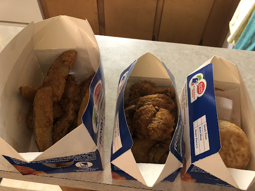 Ā Ā Ā Read moreThis was our first time here The service we received from Mr. Arice/Apice (sorry, I glanced his nametag for just a second) at the ordering kiosk was friendly and informative. You walk in and have the great variety of a Sheetz gas station with a heavy emphasis on fried chicken. It's in the namesake, so there you go. We ordered with Mr. A's help and for what we got, it's comparable to current day KFC prices. I liked that I could get Krispy Kreme donuts individually here without having to go all the way around Greenville. I got regular seasoning on my tenders while the husband got the spicy. He says they have a good bit of heat and he likes that sort of thing but maybe won't do it every trip to the 'farm. Things to know for next time: The wedges were unsalted so, be sure to season as soon as you get them. The mashed potatoes were doing okay until... we turned over the gravy container. We let Mr. "A" know so they could check the dates a little closer. The tenders were juicy and a good size. We paid at the self checkout a couple of times since we got hot food then a donut for the road. I don't think either of us got to interact with the attendant there but she kept busy and handled a difficult transaction professionally when I was watching other people use the kiosks. I wish I got her name too. All I know is she was an older lady. We've found a different little spot to break away from our...