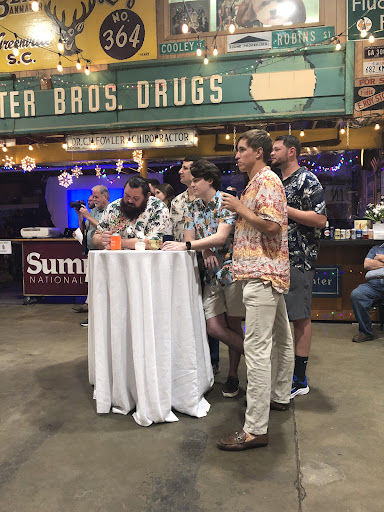 We hosted a Welcome Dinner at Swanson's Warehouse the night before our wedding. We wanted this type of event in place of a more formal rehearsal dinner, because we wanted the all of our wedding invitees to get two nights together to eat, drink, and celebrate--Swanson's was a perfect spot! The contact at Swanson's was easy to work with. The event was affordable and casual yet intimate. We picked the caterer. We hosted this event on December 30th so the colorful string lights felt perfectly festive! And the signs of Greenville's past covering the walls were fun for the Greenville natives--it took them back! (Photographer: Julia...